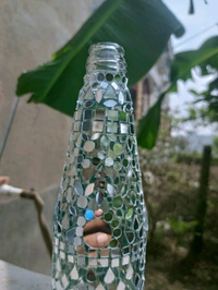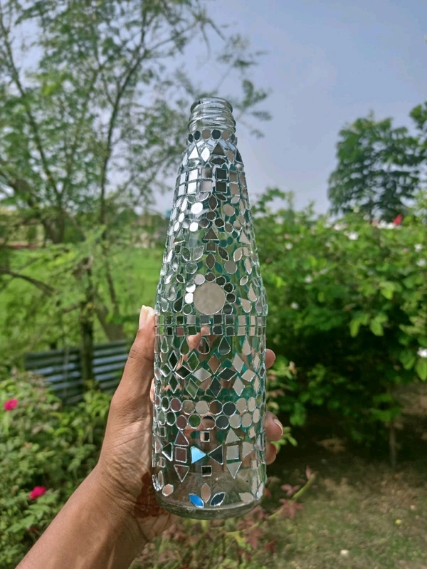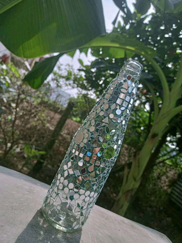 Lippan art on glass bottle and hand work of mirror charms for home decoration